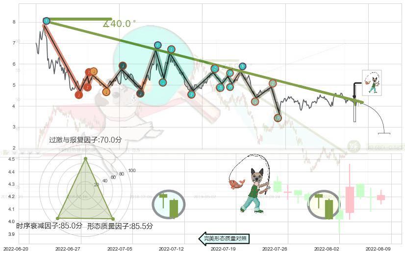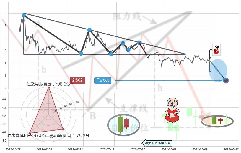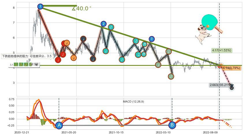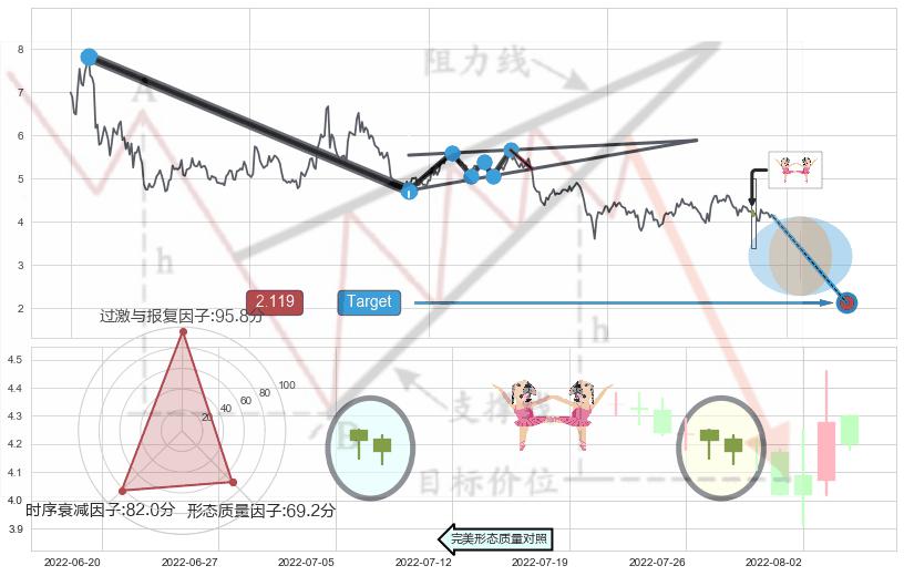 ♘ 阻力价格位4.17,可信任强度47.18%,距离最后交易2022-08-12形成的收盘价格4.11相差 +1.35%