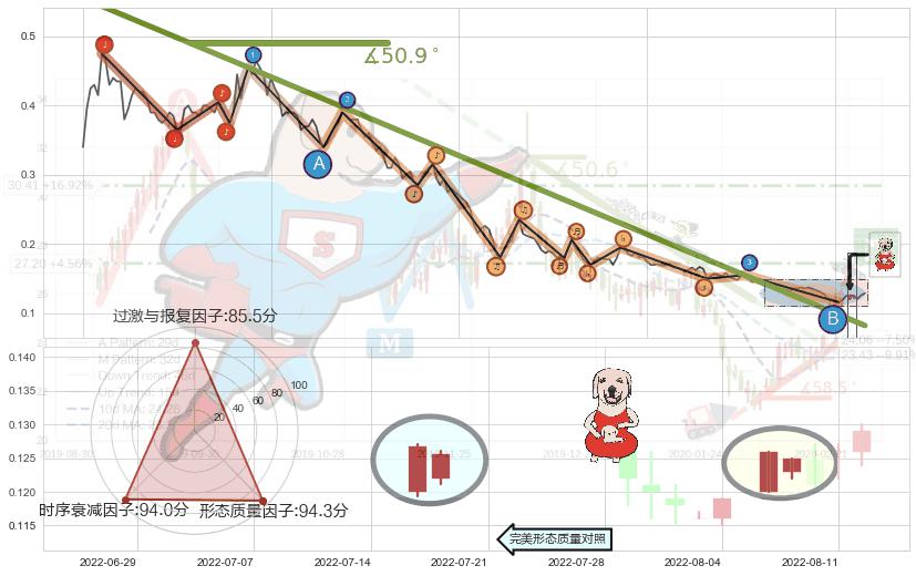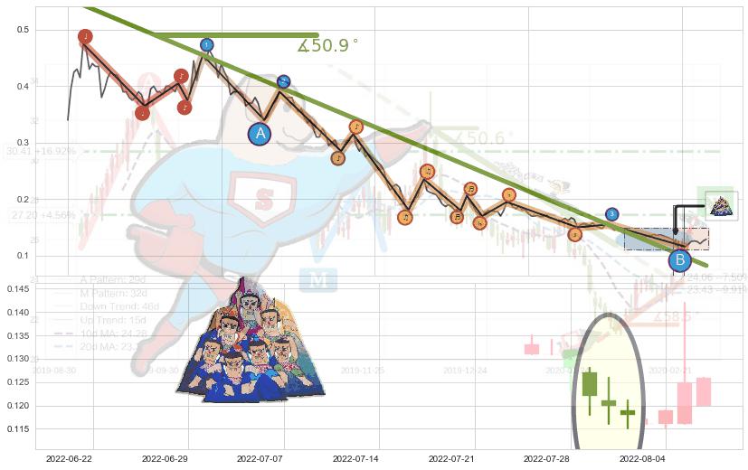 ➣ 2021-10-11-2022-08-11下跌趋势存在反转上涨[机会],其原下跌趋势的阻力位(0.0822727)已被突破[强支撑信号],原下跌趋势角度: 50.9˚