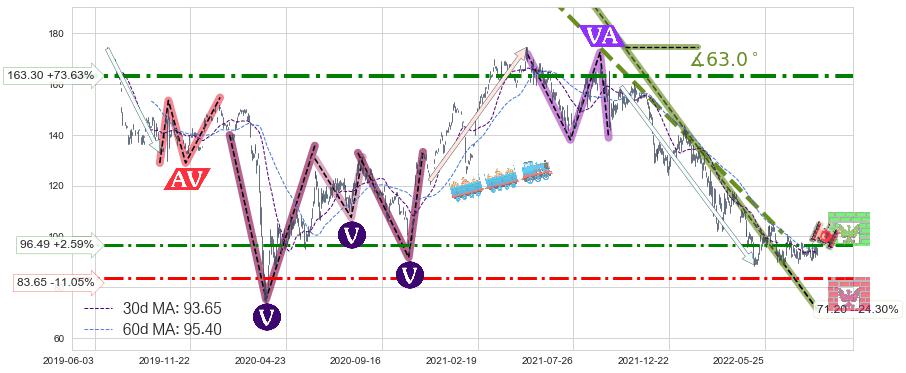 ♘ 阻力价格位96.49,可信任强度58.43%,距离最后交易2022-08-12形成的收盘价格94.05相差 +2.59%