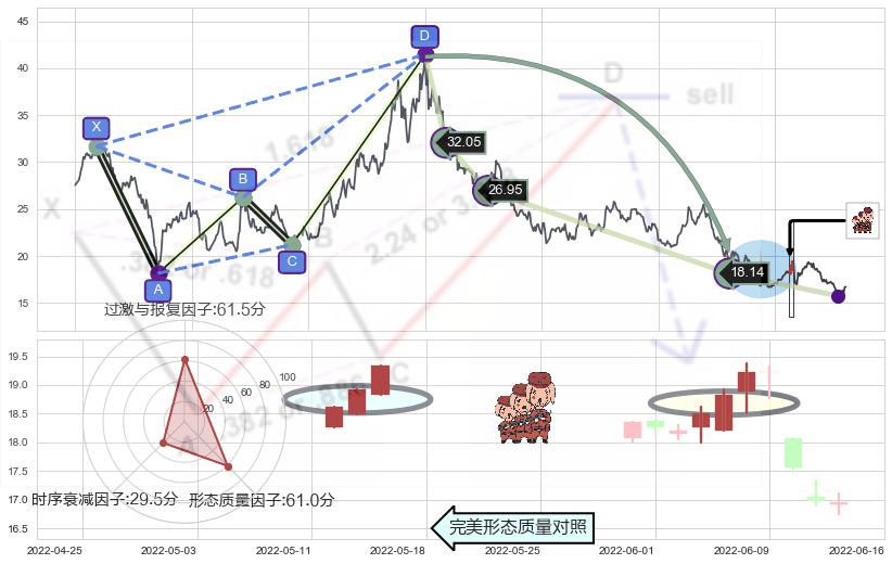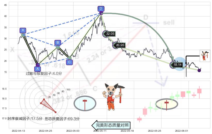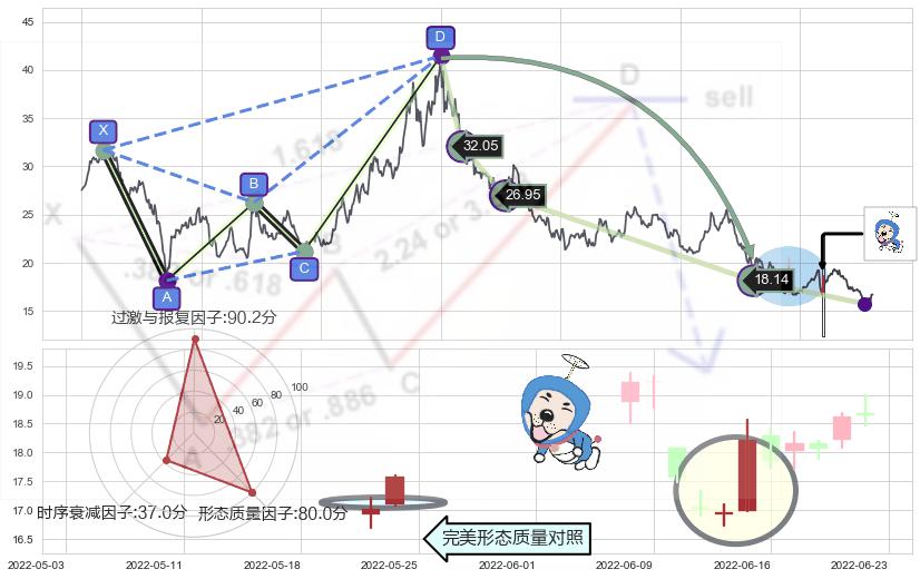➢ 🕰 价格走势在2022-06-20至2022-06-27期间形成顶部尽头线(下山虎),残存影响值:-4.31
