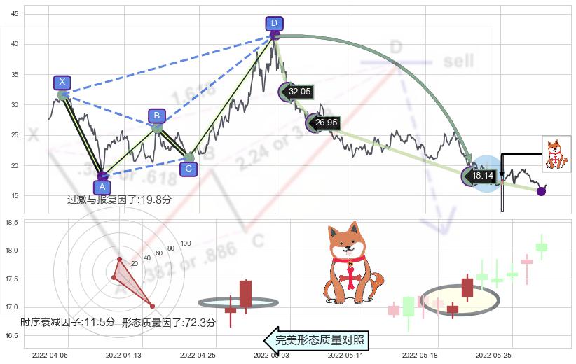 ➢ 上涨孤独十字星 🔜 谐波螃蟹目标❸拐点支撑上涨 综合量化分数:53.40 【中性】