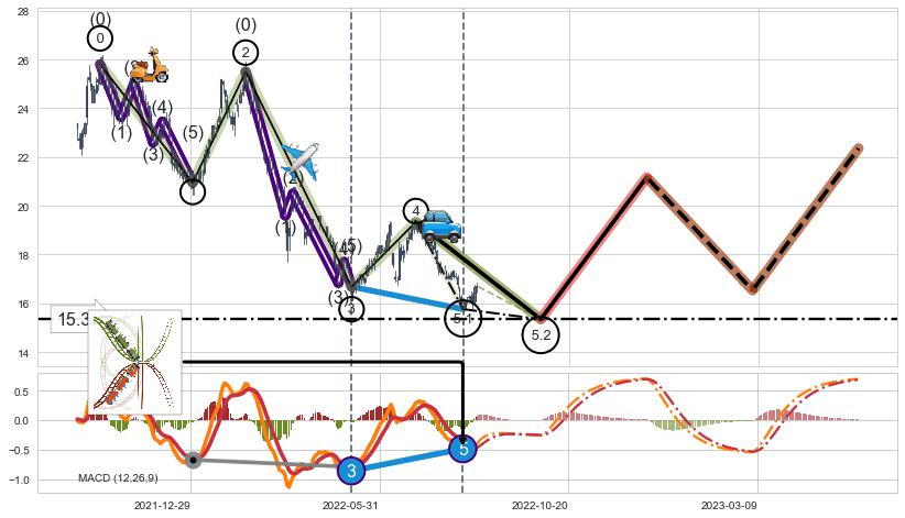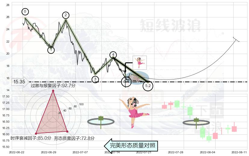 ➣ 5.1: 预测当前第5浪位置(2022-08-03, 15.76),仍然有下跌空间