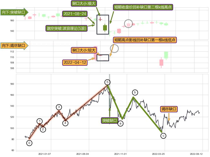 ➢ 2022-04-12形成:向下跳空【竭尽】缺口