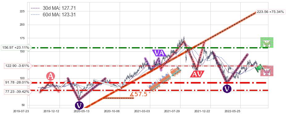 ♘ 支撑价格位122.90,可信任强度42.62%,距离最后交易2022-08-12形成的收盘价格127.50相差 -3.61%