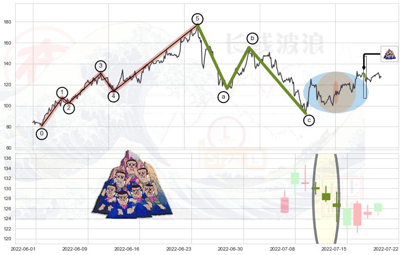 ➣ ['回调abc识别为: 【锯齿型调整浪】 ', '锯齿型:子浪535结构 ⓑ点振幅较小,ⓒ点继续发力远超ⓐ点结束位置']