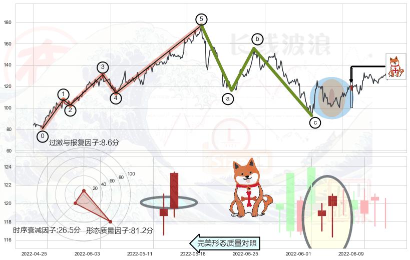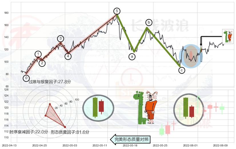 ➣ 中流砥柱形态 + 波浪理论c点回调终止反转上涨信号叠加后【反向回撤率】低,【看多】信号叠加【存续影响大】