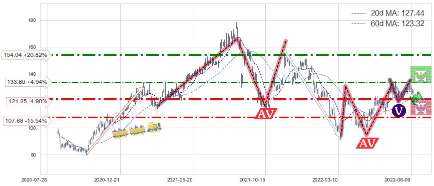 ♘ 阻力价格位133.80,可信任强度49.61%,距离最后交易2022-08-12形成的收盘价格127.50相差 +4.94%