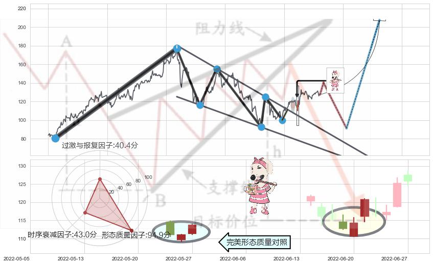 ➢ 🕰 价格走势在2022-06-23至2022-06-24期间形成上涨螺旋桨形态,残存影响值:6.17