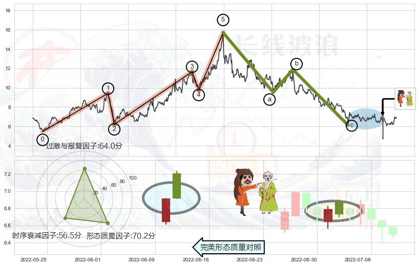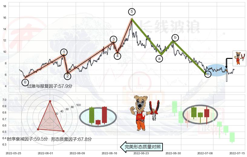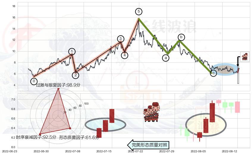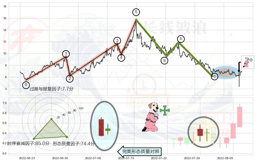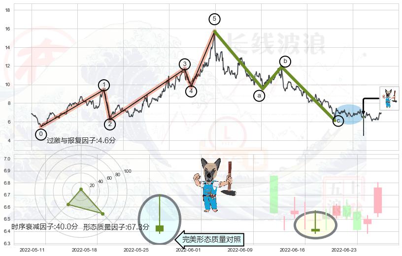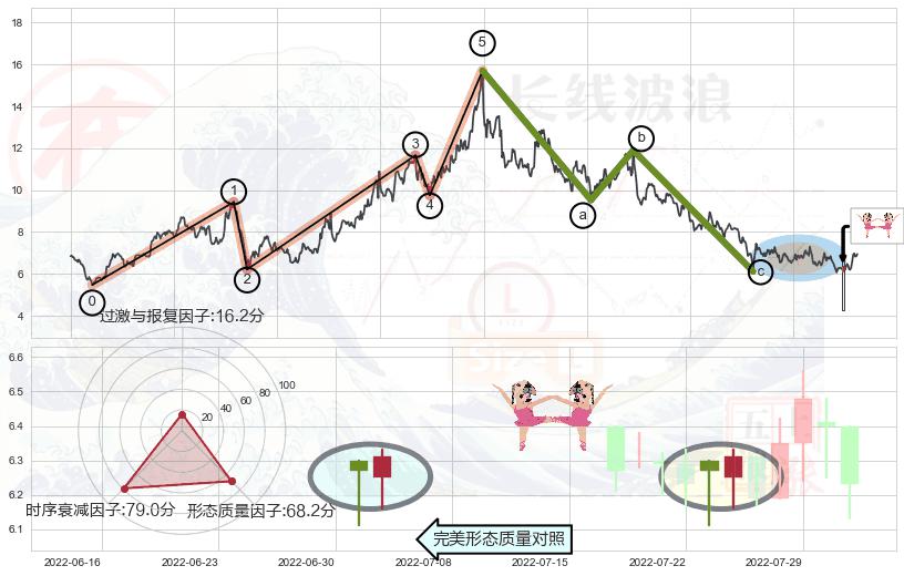 ➢ 看跌(高位倒锤头)流星线 🔜 波浪理论击穿破位C点继续下跌 综合量化分数:44.39 【偏空】