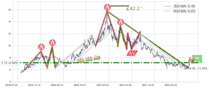 ♞ 30日均线:6.49,60日均线:6.63→ 快线<慢线