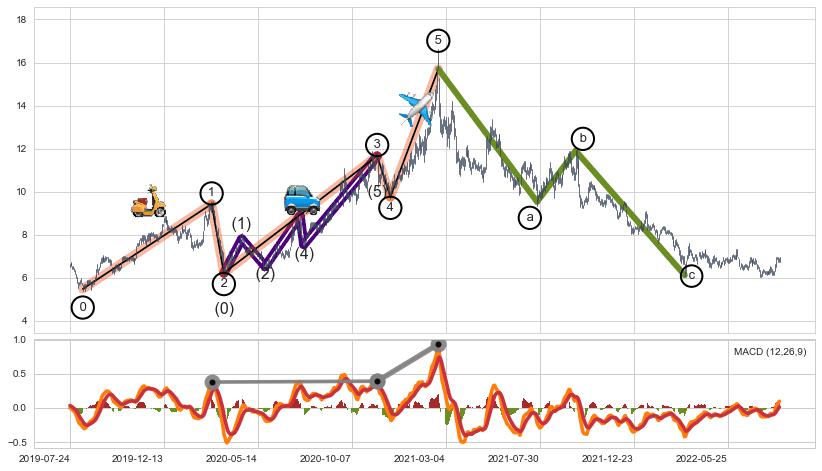➢ 波浪理论:猜想达到c点后小回调终止反转上涨 → 上涨 → 【拐点】临近 → 阶段均值回复结束后继续大周期趋势跟踪