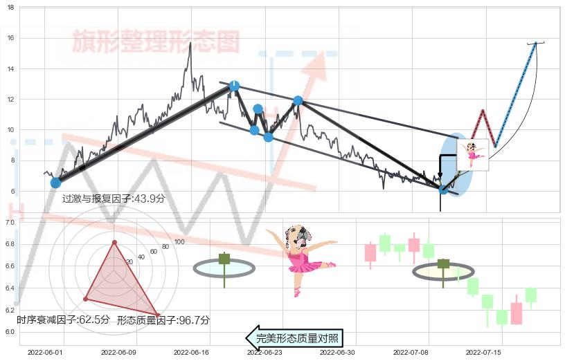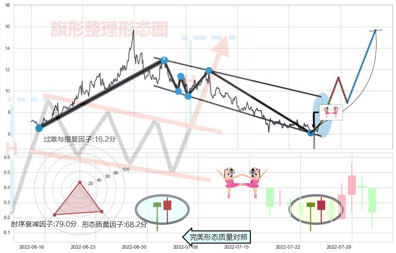 ➢ 上涨镊子线(U形磁铁) 🔜 降旗形临近阻力猜想转换支撑上涨 综合量化分数:53.42 【中性】