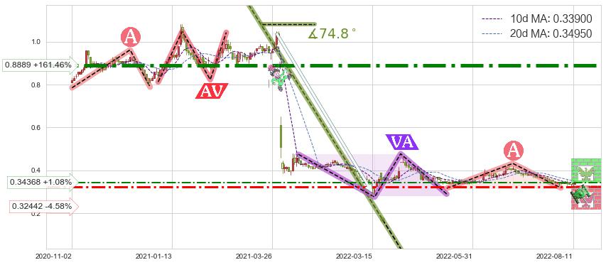 ♘ 阻力价格位0.34368,可信任强度33.24%,距离最后交易2022-08-12形成的收盘价格0.34000相差 +1.08%