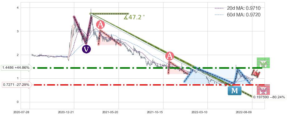 ➢ 【仅预测突破】最后价格:1.0000与预测突破价格:1.6091→【空间较大】后续最小【反转】第一目标价格→(2022-11-02: 2.077 )