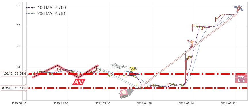 ♘ 支撑价格位1.3248,可信任强度93.14%,距离最后交易2021-09-24形成的收盘价格2.780相差 -52.34%