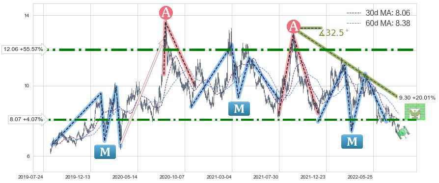 ♞ 30日均线:8.06,60日均线:8.38→ 快线<慢线