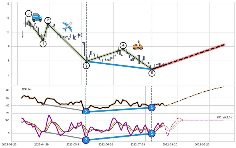 ➣ 波浪理论:猜想止跌 → 上涨 →【拐点】浪5已完成 → 大趋势均值回复