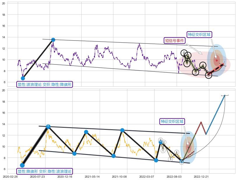 ➢ 波浪理论属【短级别信号事件】降旗形属【长级别信号事件】长短周期组合信号事件, 短长事件长度比14.36%