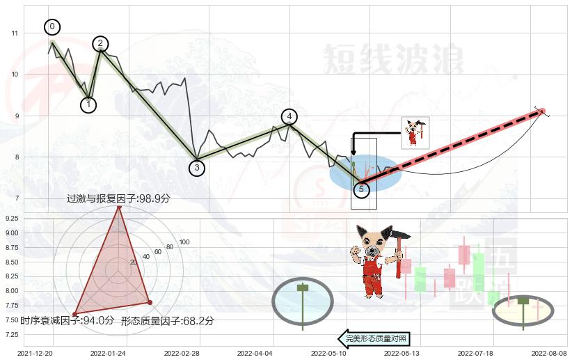 ➢ 🕰 价格走势在2022-08-01至2022-08-01期间形成锤头线(锤子线),残存影响值:6.70