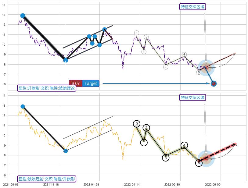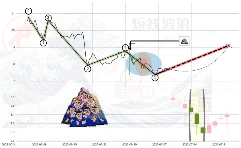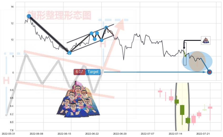 2022-06-06: 时域附近第一阻力位8.38持续的对下跌趋势进行阻拦,有效地放缓了下跌的速度。