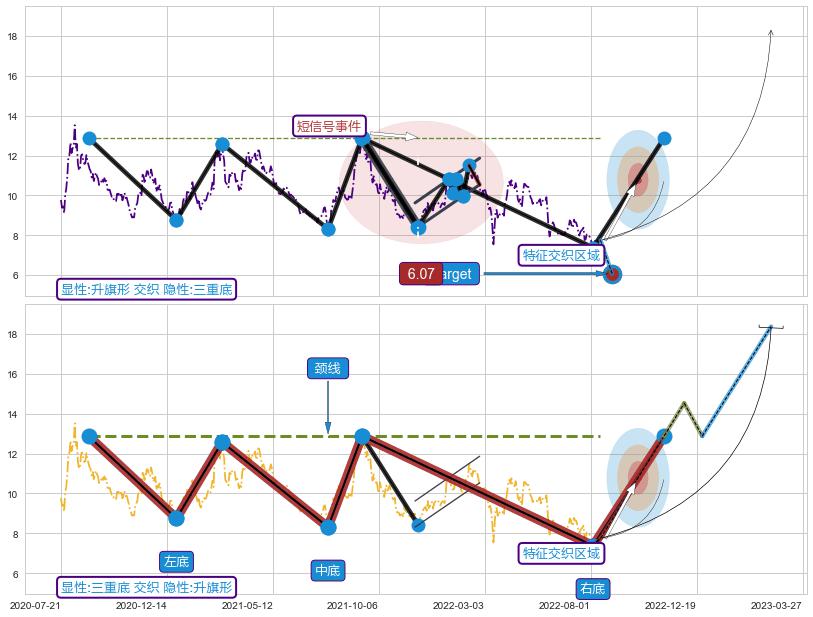 ➢ 升旗形属【短级别信号事件】三重底属【长级别信号事件】长短周期组合信号事件, 短长事件长度比22.54%