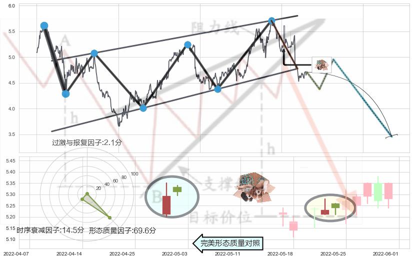 ➢ 🕰 价格走势在2022-05-23至2022-05-24期间形成顶部尽头线(下山虎),残存影响值:-0.90