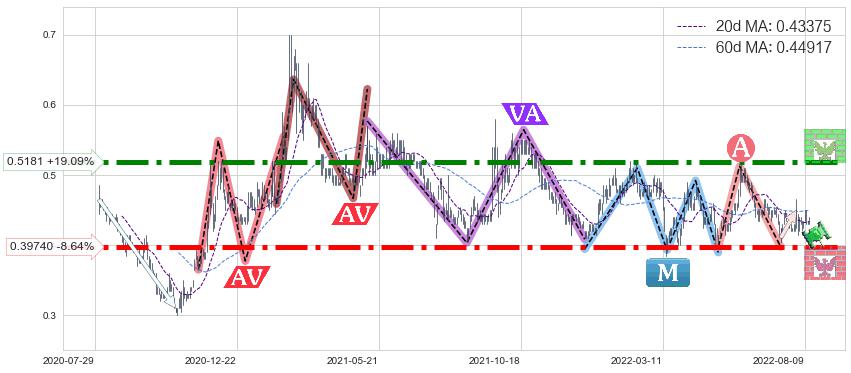 ♘ 支撑价格位0.39740,可信任强度95.44%,距离最后交易2022-08-12形成的收盘价格0.43500相差 -8.64%