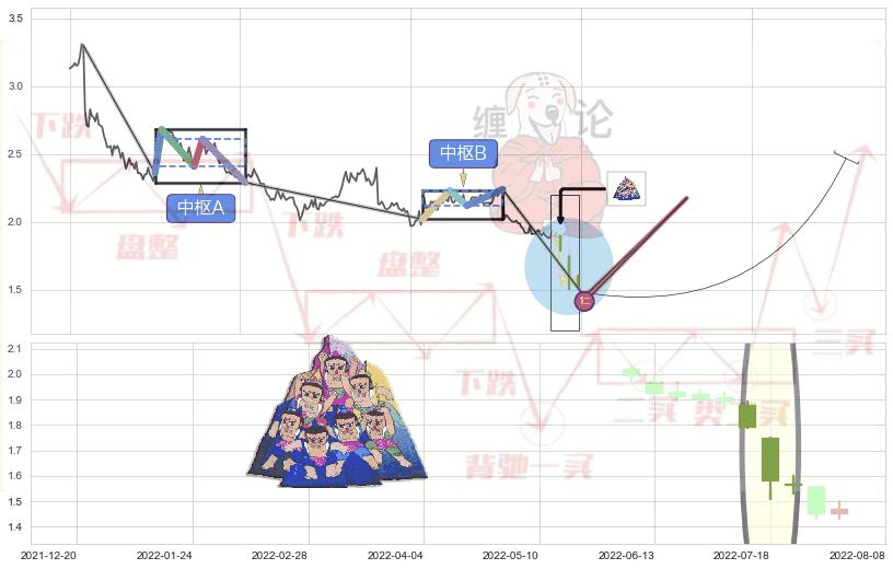 ➣ 【中枢B】:2022-03-16-2022-05-27,中枢由4笔构成,共48交易日, ZG=2.230, ZD=2.120