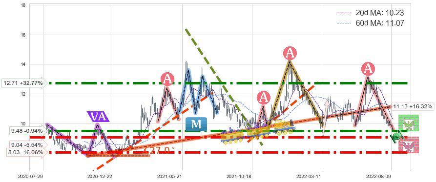 ♘ 支撑价格位9.04,可信任强度88.66%,距离最后交易2022-08-12形成的收盘价格9.57相差 -5.54%