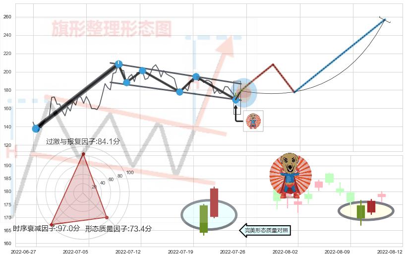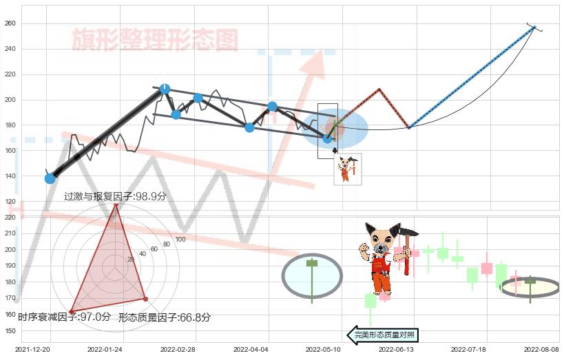 ➣ 【未确认突破,预测即将形成突破】降⚑旗形起点:2022-04-21, 预测突破点:2022-08-17,形态共81交易日
