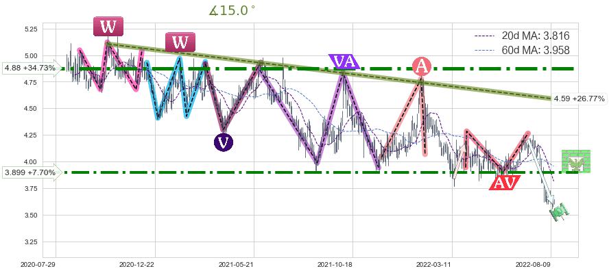 ♘ 阻力价格位3.899,可信任强度78.10%,距离最后交易2022-08-12形成的收盘价格3.620相差 +7.70%