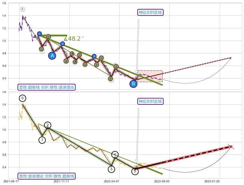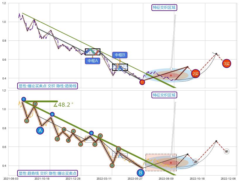 ➣ 【中枢B】:2022-03-23-2022-04-06,中枢由5笔构成,共10交易日, ZG=0.5200, ZD=0.5200