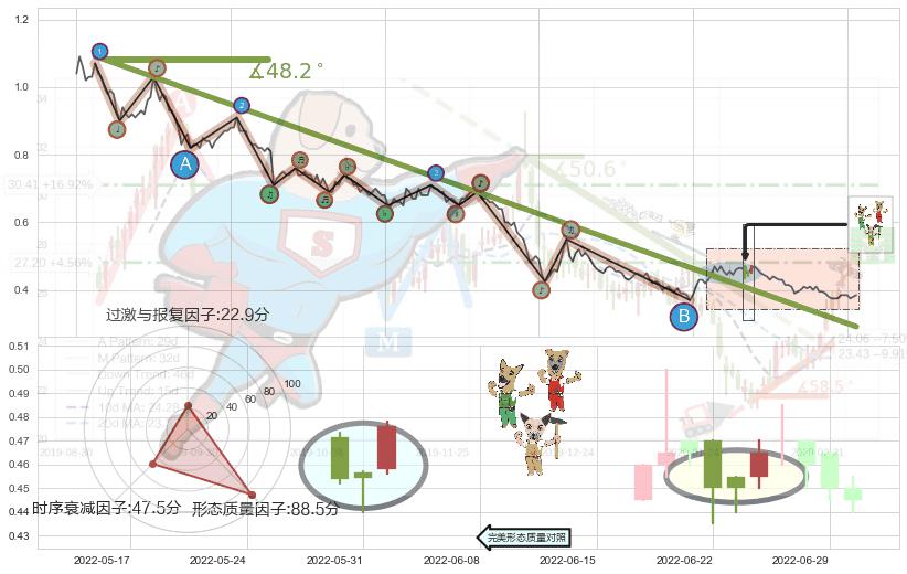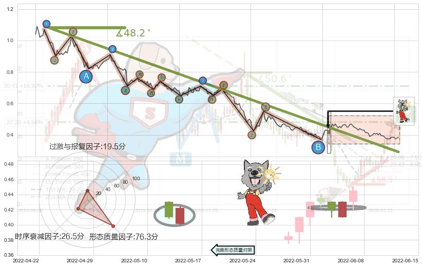 ➢ 2021-08-11-2022-06-07下跌趋势存在反转上涨[机会],其原下跌趋势的阻力位(0.29171)已被突破[强支撑信号],原下跌趋势角度: 48.2˚