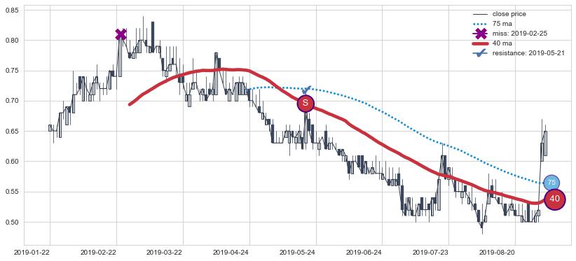 ➢ 最优均线组合共正确确认支撑阻力信号6处,正确确认率 75.00%