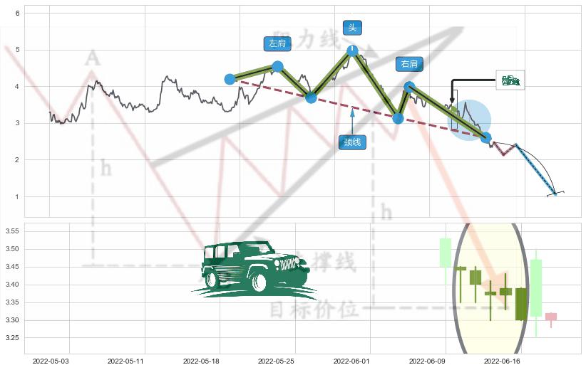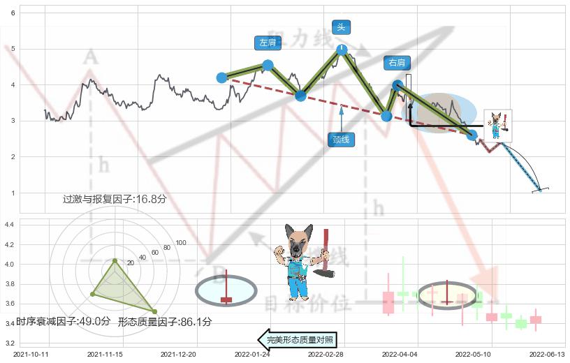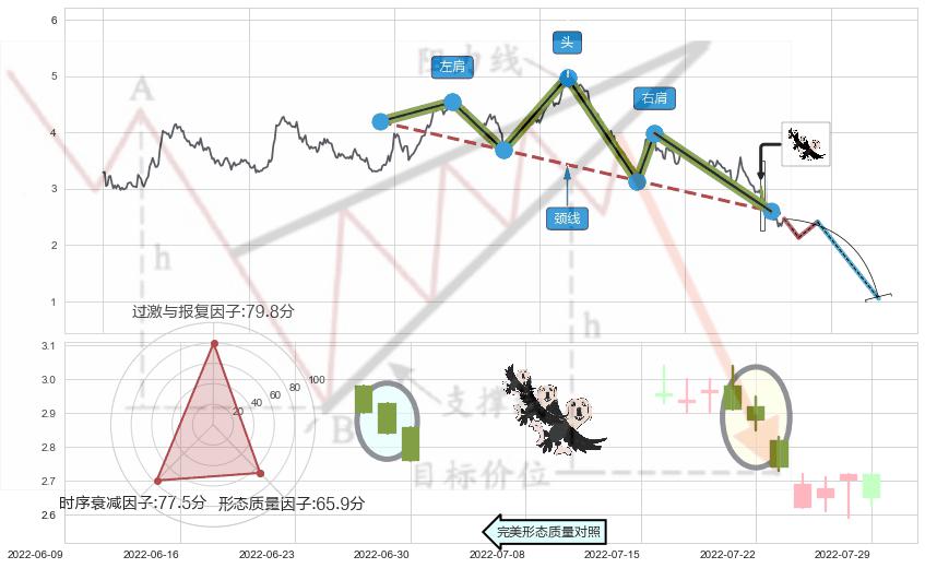 ➢ 【卖1】: 激进型 卖点→(2022-08-01: 2.602 )形成突破头肩顶【反转】形态