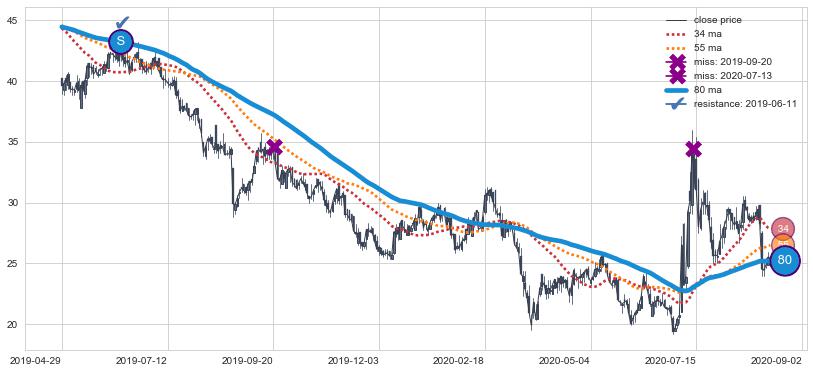➣ 40小时均线于(2022-05-12: 29.66)形成【金叉】基于【金叉历史模型】预测金叉后最高波峰价格: 38.71, 金叉后最高价格38.85,已经上涨超出预测最高波峰价格, 预期回调