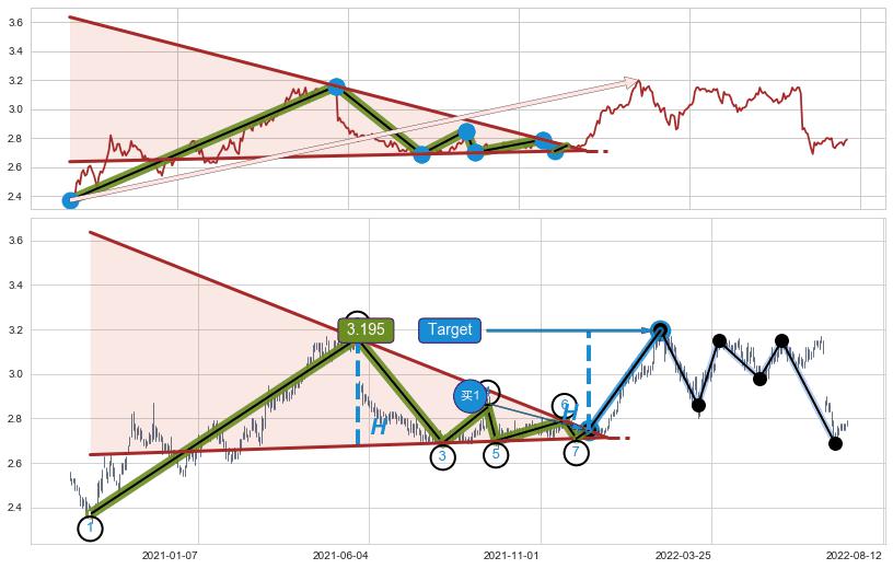 ➢ 【买1】: 激进型 买点 →(2021-12-09: 2.747 )形成突破上升【对称】三角形整理【整理】形态