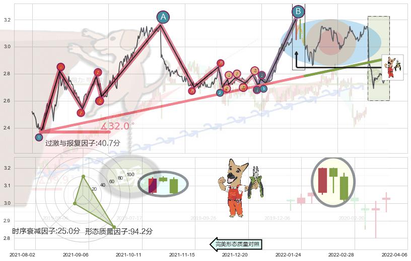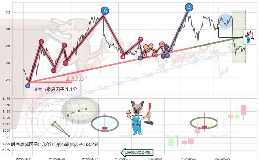 ➢ 2020-10-06-2022-03-01上升趋势存在反转[风险],其原上升趋势的支撑位(2.915)已破位[强阻力信号],原上升趋势角度: 32.0˚