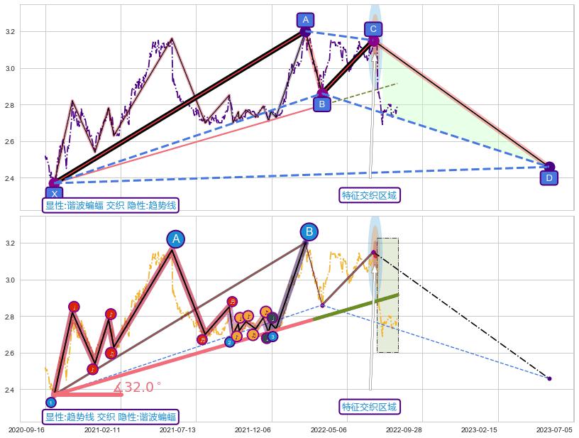 ➢ 谐波蝙蝠与趋势线信号事件周期长度级别相同,同周期信号事件