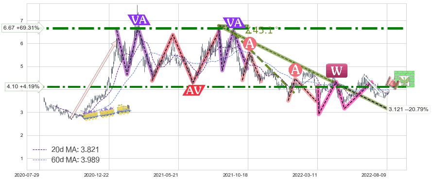 ➢ 【已确认突破】最后价格:3.940与最小【反转】第一目标价格→(2022-09-28: 5.95 )相较: 上涨空间【较大】