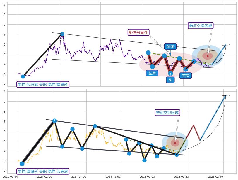 ➢ 头肩底属【短级别信号事件】降旗形属【长级别信号事件】长短周期组合信号事件, 短长事件长度比24.40%