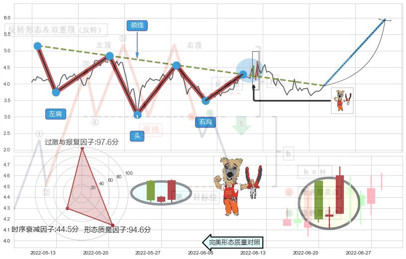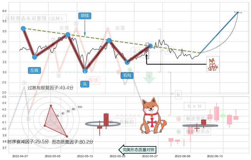 ➢ 【买1】: 激进型 买点 →(2022-06-10: 4.29 )形成突破头肩底【反转】形态