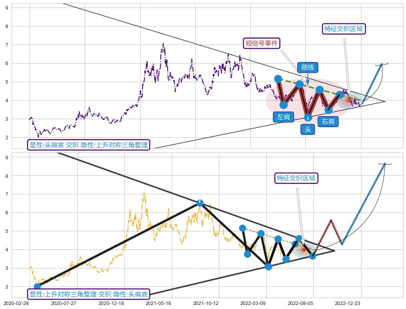 ➢ 头肩底属【短级别信号事件】上升对称三角整理属【长级别信号事件】长短周期组合信号事件, 短长事件长度比19.21%