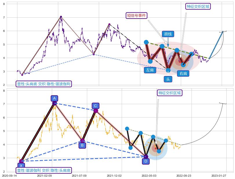 ➢ 头肩底属【短级别信号事件】谐波伽利属【长级别信号事件】长短周期组合信号事件, 短长事件长度比31.28%