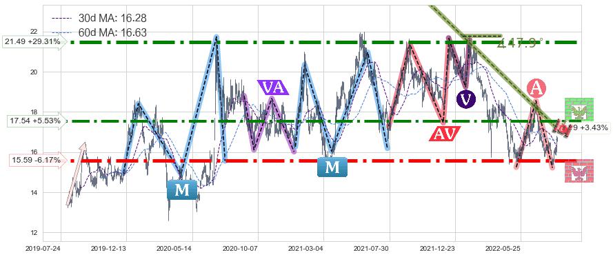 ➣ 【仅预测突破】最后价格:16.62与预测突破价格:18.50→【空间中等】后续最小【反转】第一目标价格→(2022-10-24: 21.58 )