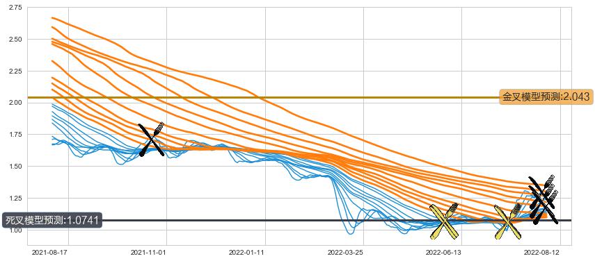 ➣ 30小时均线于(2022-08-11: 1.1667)形成【死叉】基于【死叉历史模型】预测死叉后最低波谷价格: 0.9528, 死叉后最低价格1.1700,已经下跌超出预测最低波谷价格, 预期反弹