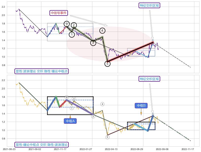 ➣ 缠论中枢点:猜想破位中枢B后持续下拉 → 下跌 → 破位中枢B支撑 → 持续趋势跟踪