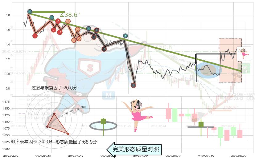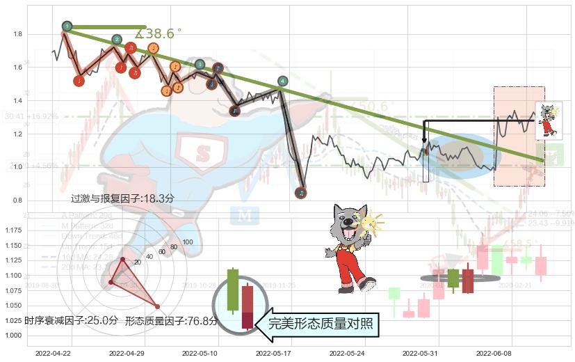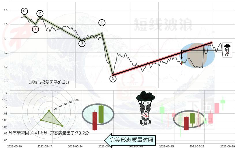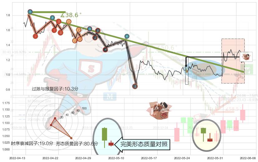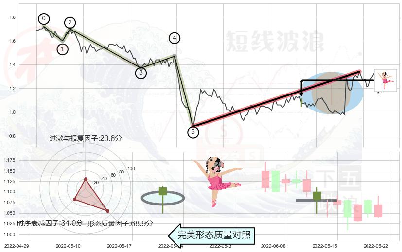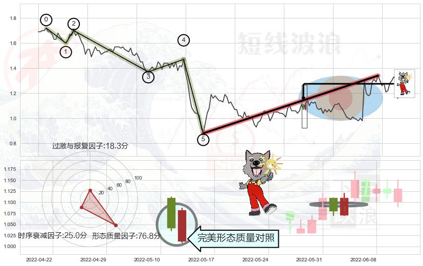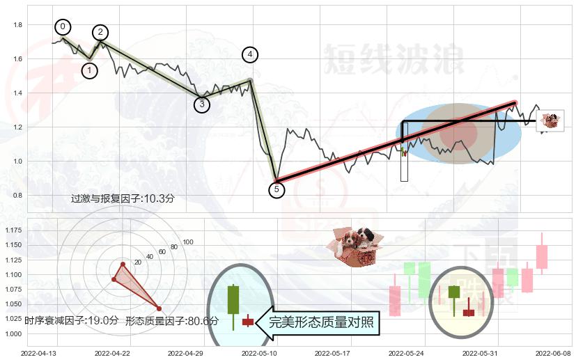 ➢ 🕰 价格走势在2022-06-13至2022-06-13期间形成单针探底(定海神针),残存影响值:2.37
