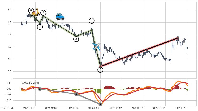 ➣ 波浪理论:猜想达到c点后小反弹终止反转下跌 → 下跌 → 【拐点】临近 → 阶段均值回复结束后继续大周期趋势跟踪
