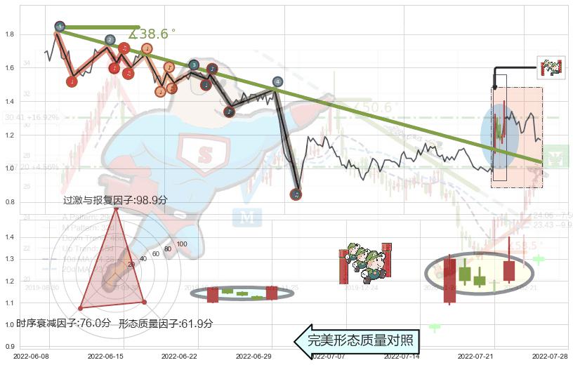 从2021-10-19至2022-04-29,共包含132个交易日,阶段股价下跌-50.29%,阶段股价变动位移路程比: 1 : 5,下跌趋势角度: 38.6